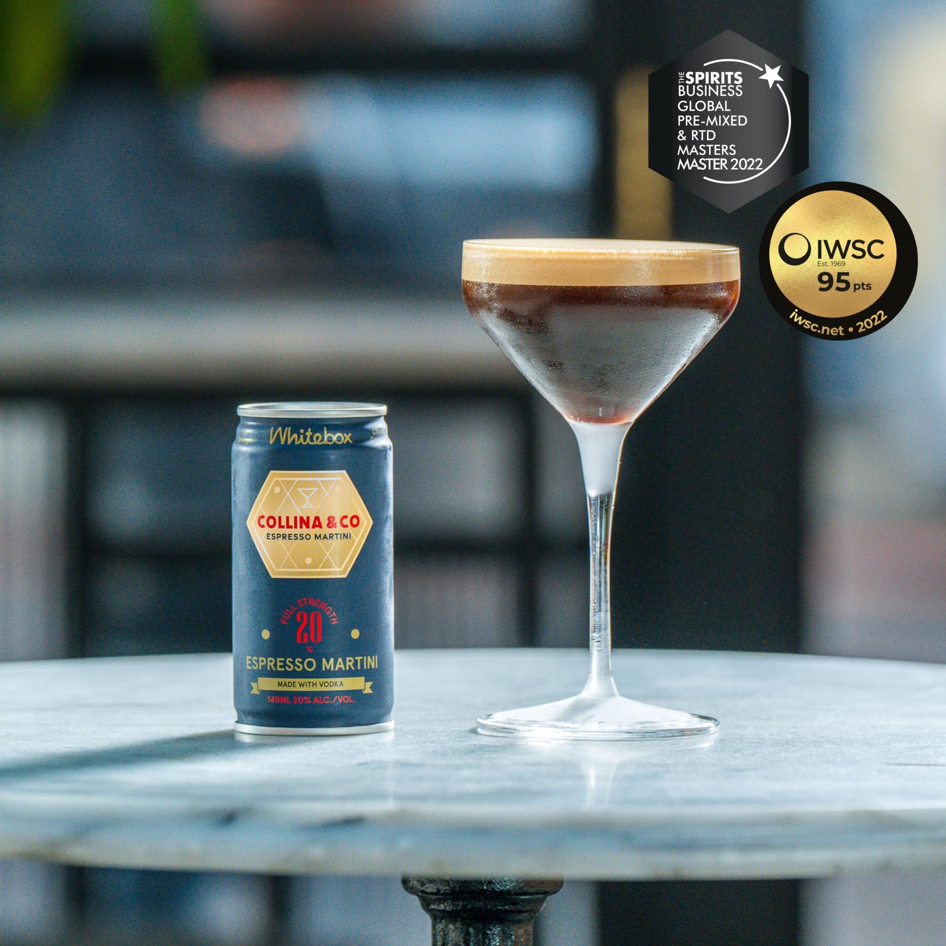 Chill well. Shake the can for at least 12 seconds to create foam, pour entire contents into a coupe glass (180-200ml glass). Garnish with 2-3 coffee beans.